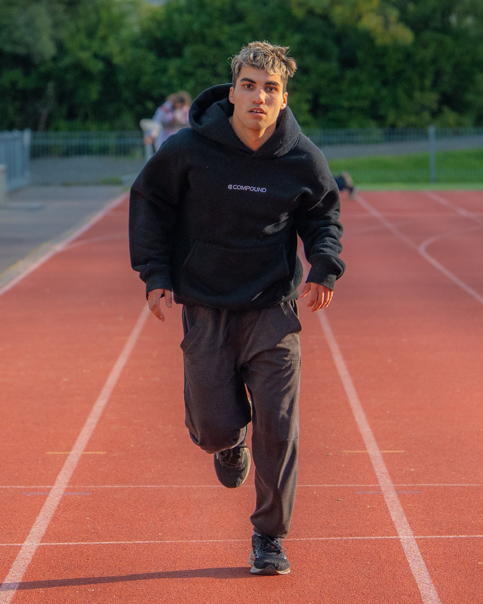 Designed for athletes who move hard and rest harder, the oversized fit gives you room to breathe without sacrificing style. Whether you're hitting the gym, staying warm between sessions, or repping Compound on the street, this hoodie delivers on comfort, structure, and understated performance.